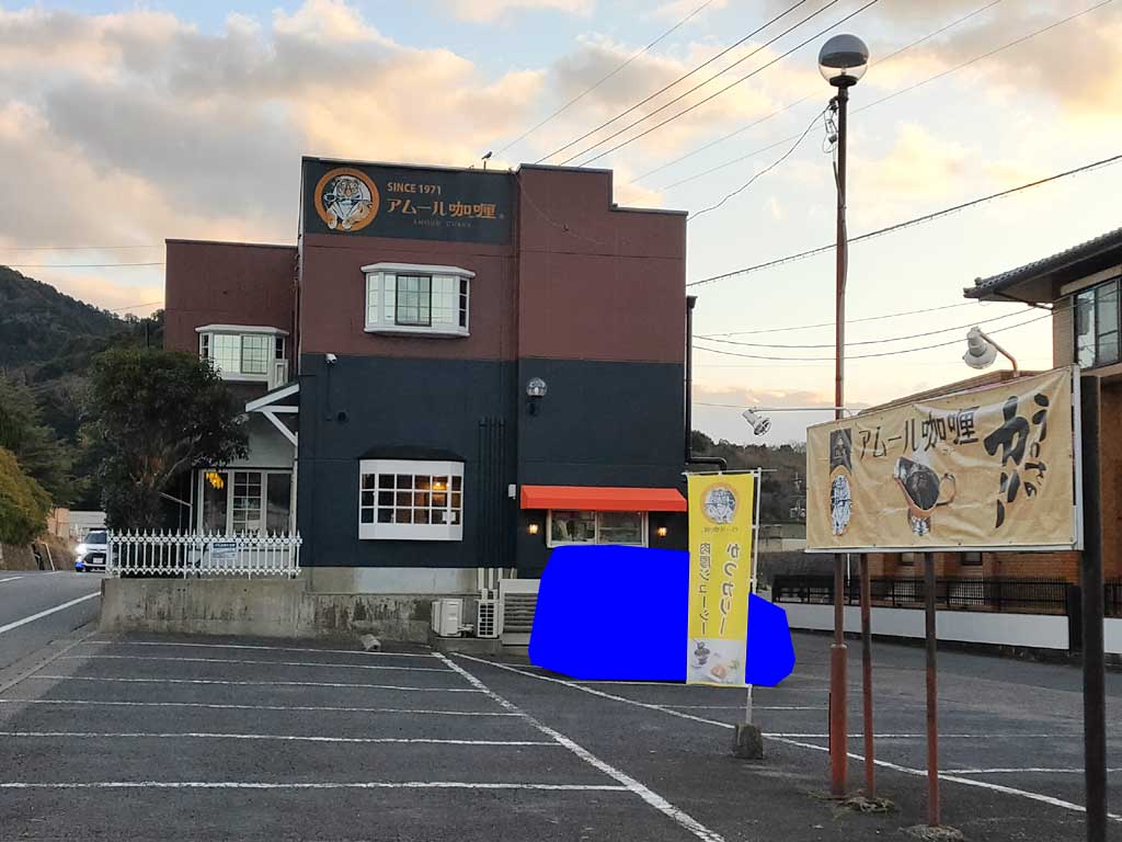 姉妹店のおうちレストランアムール小城店のイートインはランチ営業のみで、夕方はテイクアウトとドライブスルーのみなので注意。(←小城店は2025年夏頃?閉業しました)多久本店でもテイクアウトのビーフカリー700円やとんかつカリー1000円、厚切りとんかつ570円ほかを扱っている。2020年4月