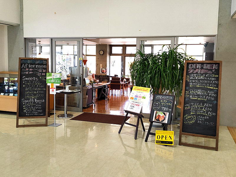 まちづくり交流センター「あいぱれっと」のカフェ。祝日月曜日に訪れた。ランチは14:00までで(土日祝は15:00まで)その後はカフェ営業のようだ。最初にレジで注文と支払いをする。平日限定の