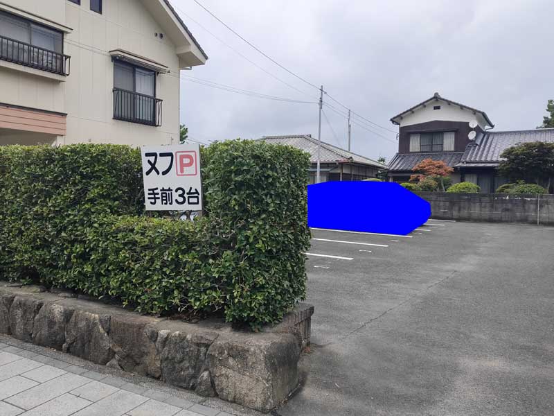 第二駐車場が唐津城方向へ130m行った道沿いに3台ある(いえとち不動産の隣、ヌフP手前3台の看板あり)