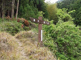 | 分かれ道。この案内板の手前に下って,小川の方へ降りて行きます。この案内板を通り越してはダメです。9:55AM |