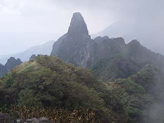 | 根子岳東峰から見た天狗岩。縦走は結構危険だと以前聞きましたが,行けるところまで行ってみようと言うことで 12:15 頃出発 |