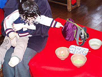 に寄って抹茶と羊羹をもらいました。他のお客さん用に用意された羊羹を横取りしようとしました。隣の店舗で試食用の羊羹やお菓子を何種類も食べました。