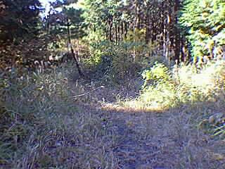 分かれ道3から5分ほど歩くと道が狭くなり山道になります。ダムからここまで75分。ここからは道がわかりにくいので,踏み後を確認することと,所々木に巻いてある色テープを頼りに進みます。