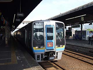 | 海部駅で乗った列車は「牟岐駅」から特急になるので,牟岐駅で普通列車に乗り換えました。牟岐駅14:51着。15:07発の普通列車に乗り換えて出発。 |