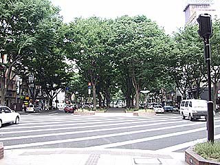 | 通りの並木。杜の都の所以です。地下鉄の駅に向かっていた所,目の不自由な女性を見かけました。横断歩道を渡るときはたまたま通りがかった女性が一緒に横断してくれたのですが,それ以後の方向は違うようで分かれてしまい,一人で歩き始めました。しばらく見ていましたが盲人用の音の出る交差点でない所が続きます。思い切って声をかけることにしました。 |